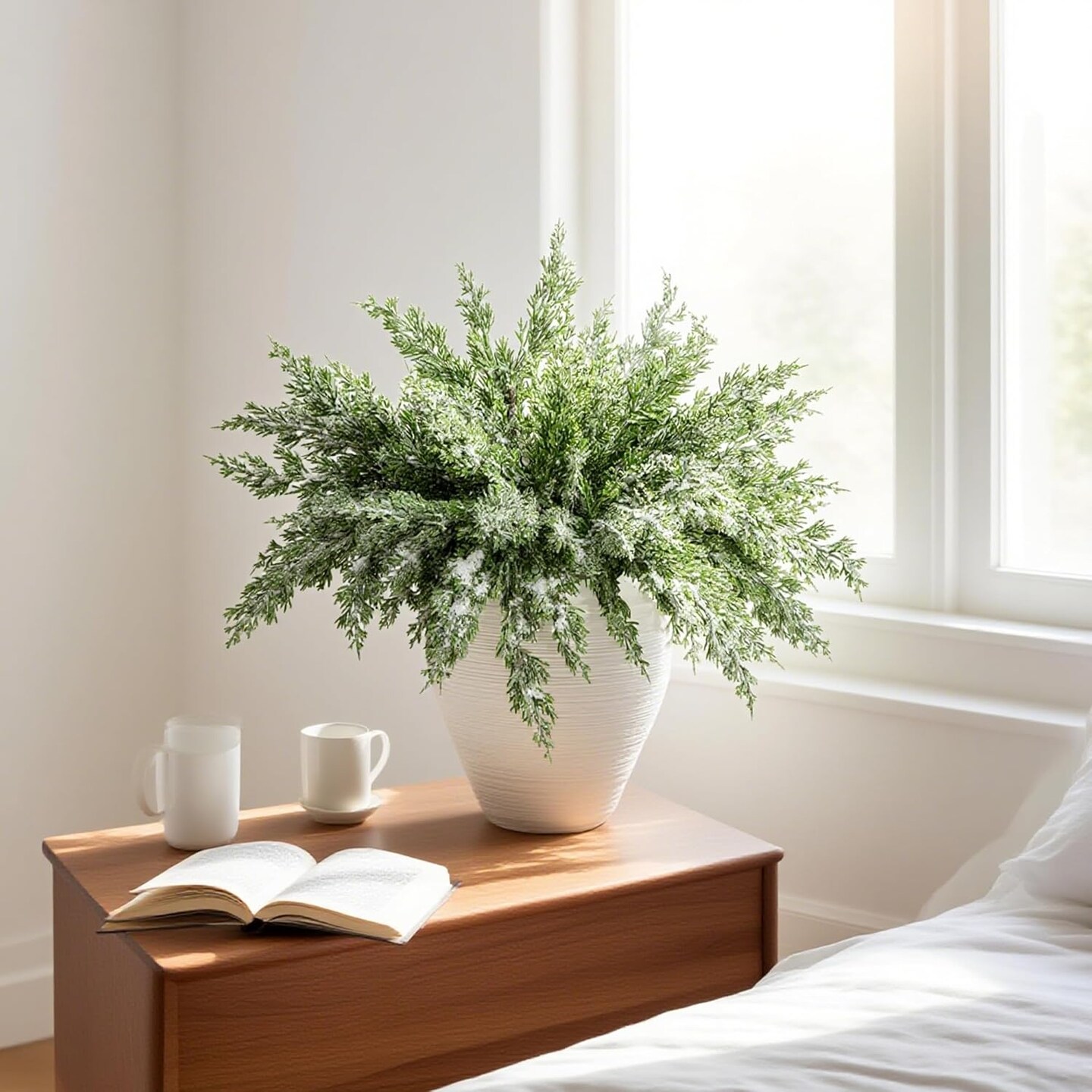 Snow Flocked Faux Greenery Norfolk Pine Sprigs Cypress Stems (Snow Pine Branches) 10"D x 10"W x 16.5"H