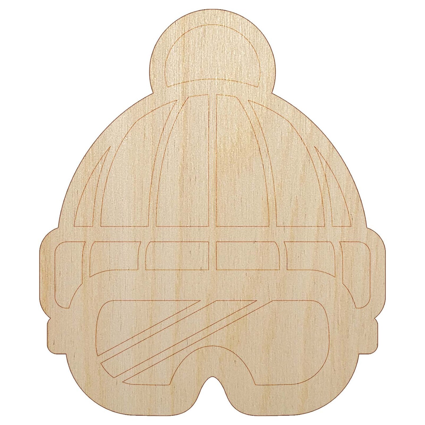 Snowboard Ski Goggles with Beanie Hat Winter Unfinished Wood Shape Piece Cutout for DIY Craft Projects