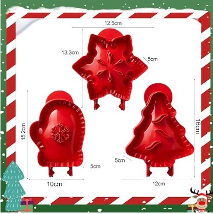 Snowflake, Mitt, and Christmas Tree Shapes Dough Presser Pocket Pie Molds for Christmas Party Baking, Party Potluck Hand Pie Molds