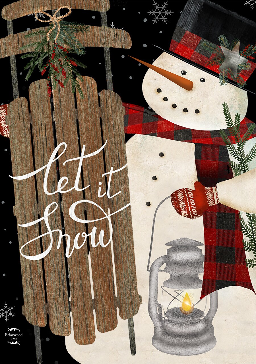 Snowman and Sled Garden Flag