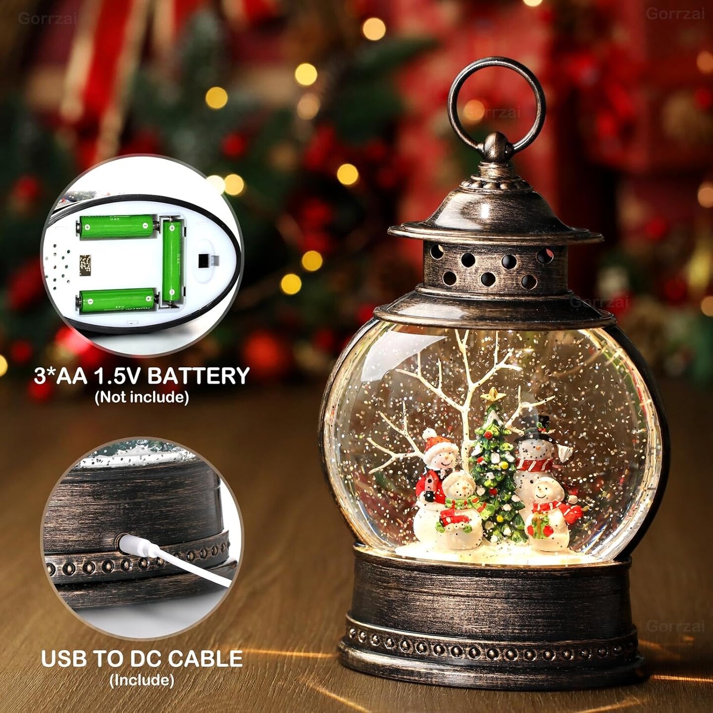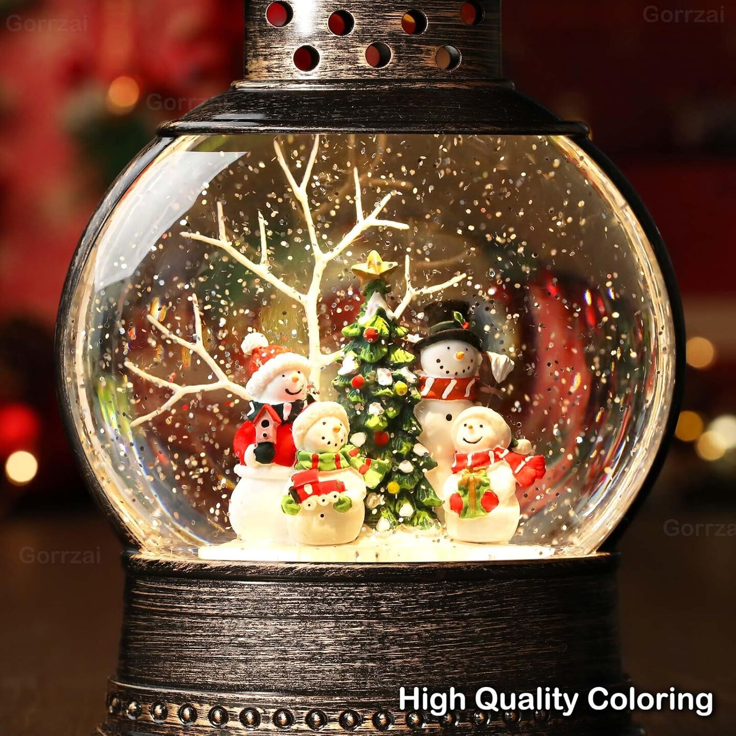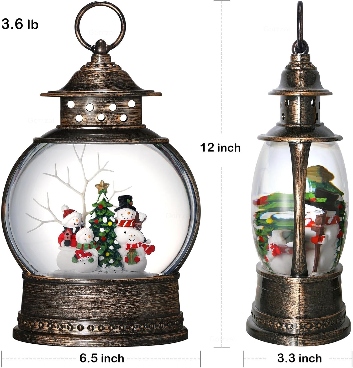 Snowman Snow Globe 12 Inch Christmas Snow Globe Lantern, Lighted Christmas Decorations Indoor Decor with Music Timer Swirling Glitter, USB or Battery Operated (2024 Upgraded Larger)