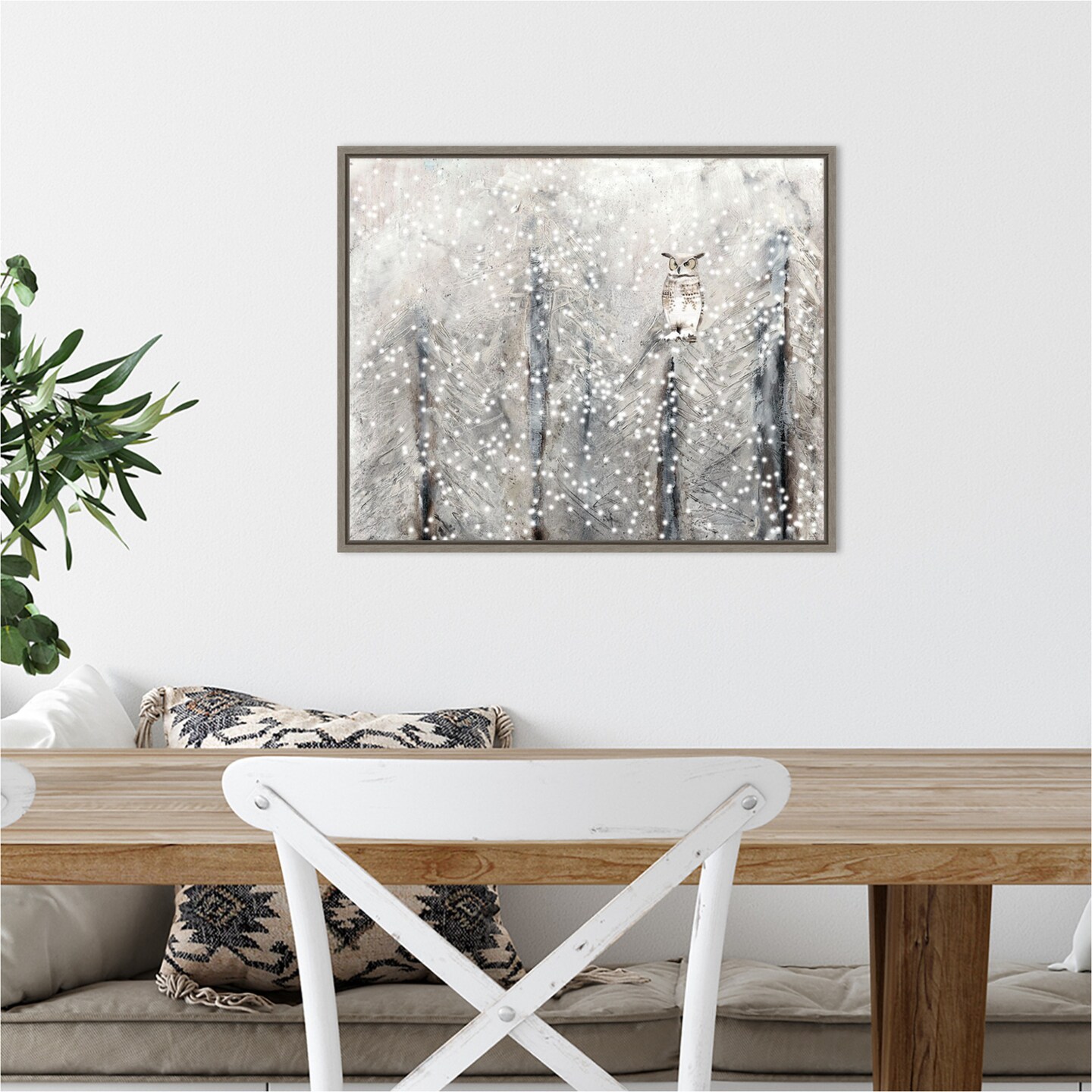 Snowy Habitat I (Owl) by Alicia Ludwig 20-in. W x 16-in. H. Canvas Wall Art Print Framed in Grey