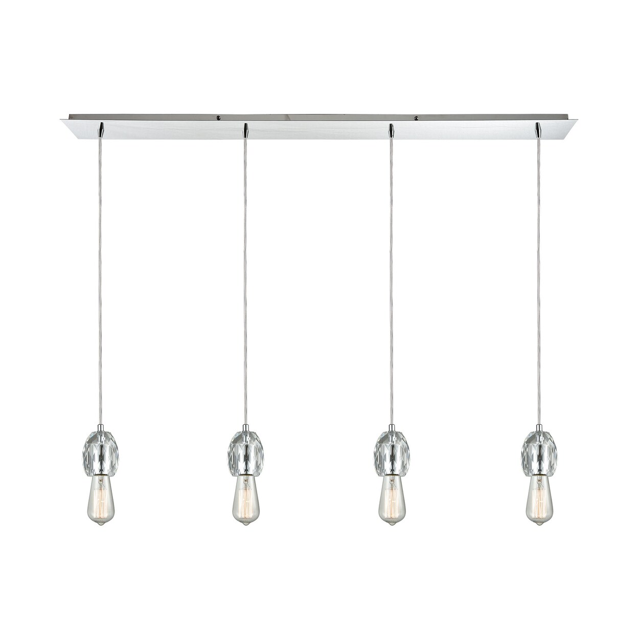 Socketholder 4-Light Linear Pendant Fixture In Polished Chrome