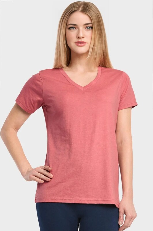 SOFRA Ladies Classic Fit V Neck Short Sleeve T Shirt Pack of 2