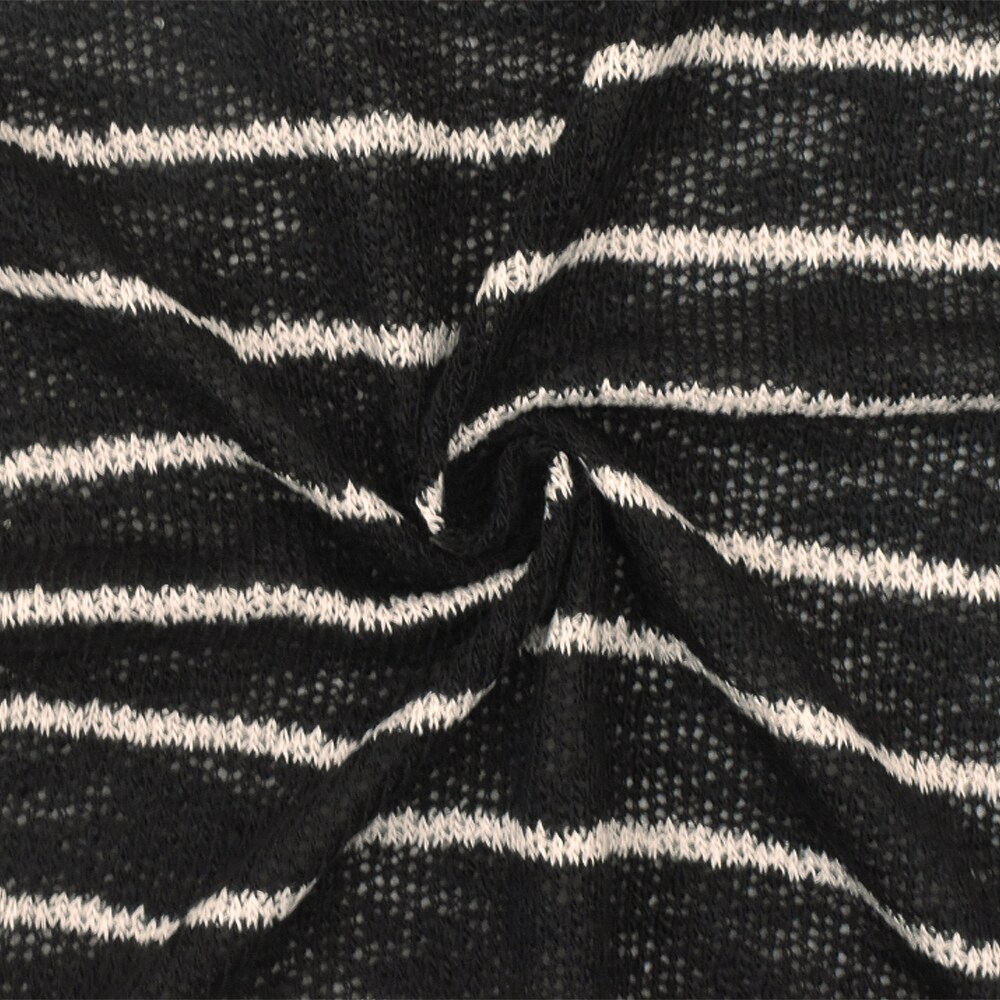 Soft Black-Taupe Striped Texture Stretch Jersey Knit Fabric By the Yard