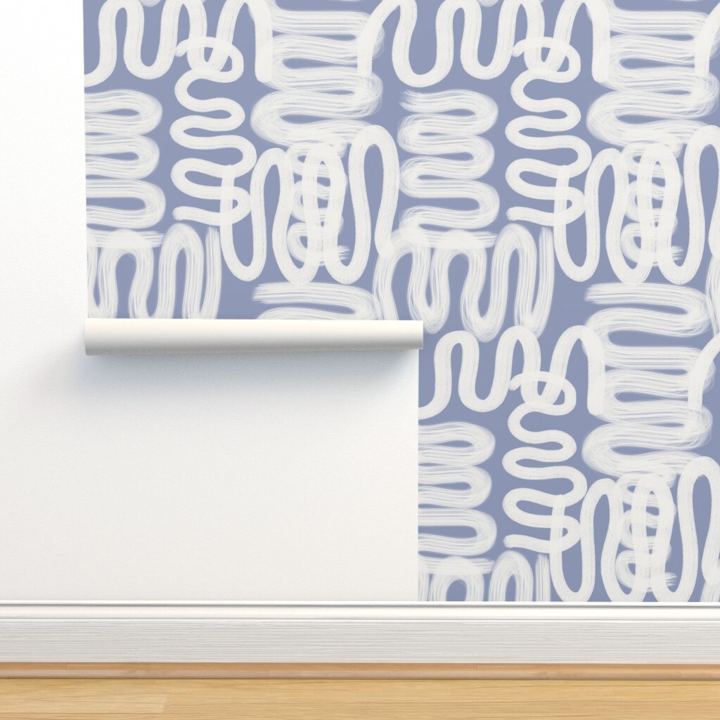 Soft Blue Squiggle Abstract Modern Design Large Scale Watercolor Paint Custom Removable Wallpaper by Spoonflower Peel & Stick Wallpaper 2FT Wide