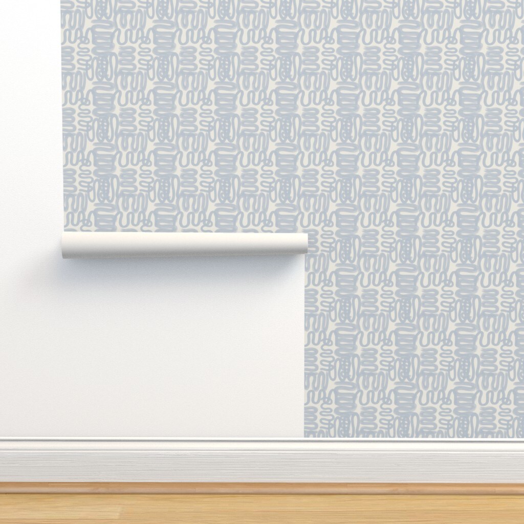 Soft Blue Squiggle Abstract Modern Design Small Scale Watercolor Paint Custom Removable Wallpaper by Spoonflower Peel & Stick Wallpaper 2FT Wide
