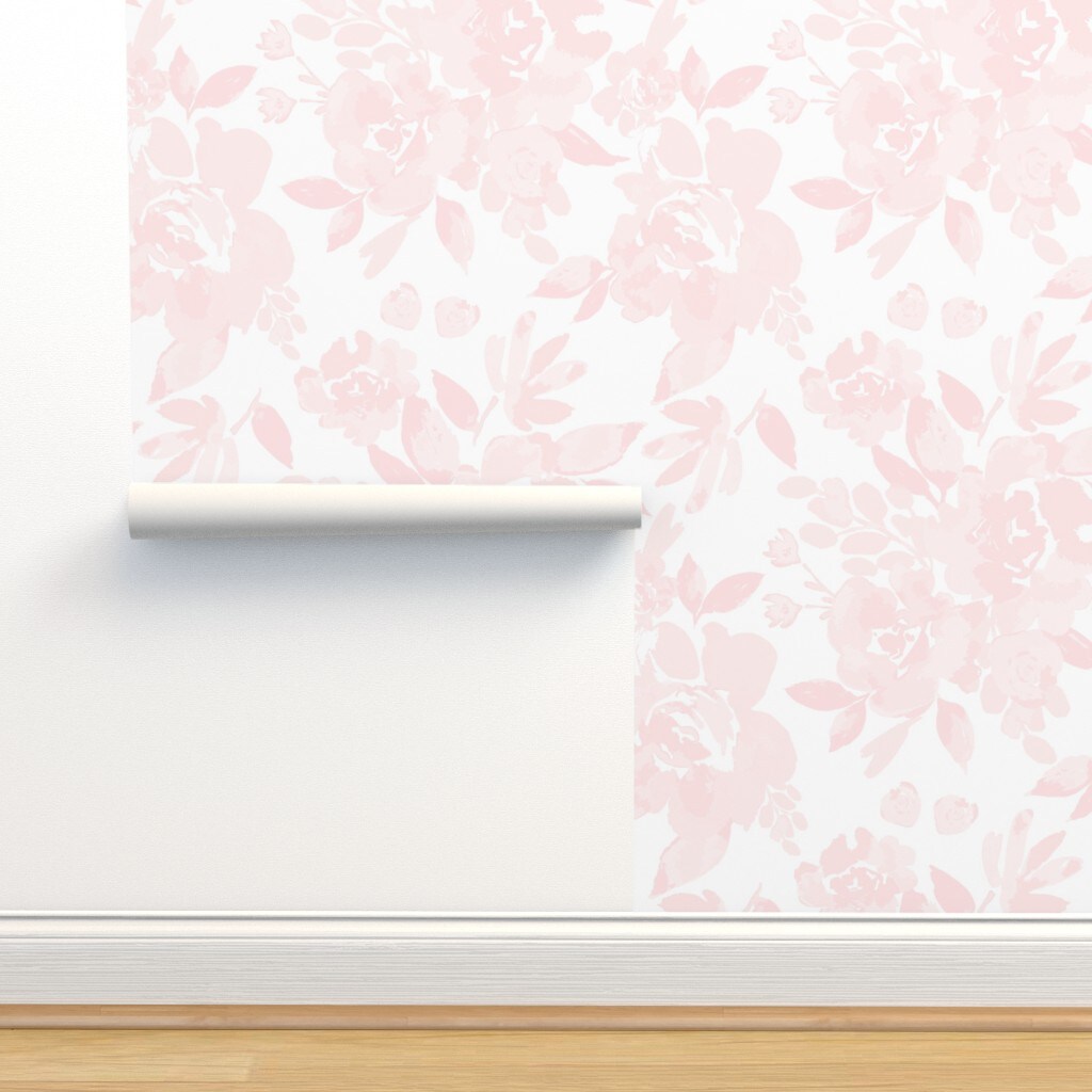 Soft Blush Floral Pink Botanical Garden Bloom Meadow Wildflower Custom Pre-pasted Wallpaper by Spoonflower Pre-Pasted Wallpaper 2FT Wide
