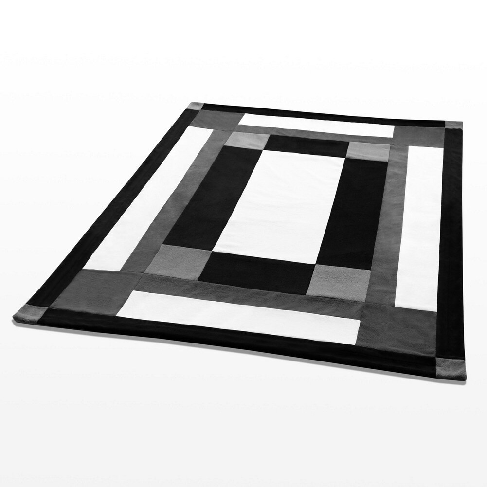 Soft Coral Fleece Patchwork Throw, Warm Blanket for Sofa & Bed