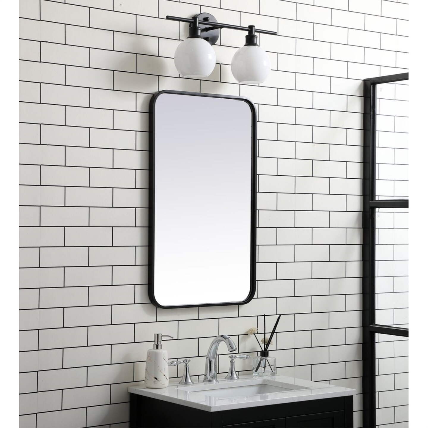 Soft corner metal rectangular mirror 18x30 inch in Black