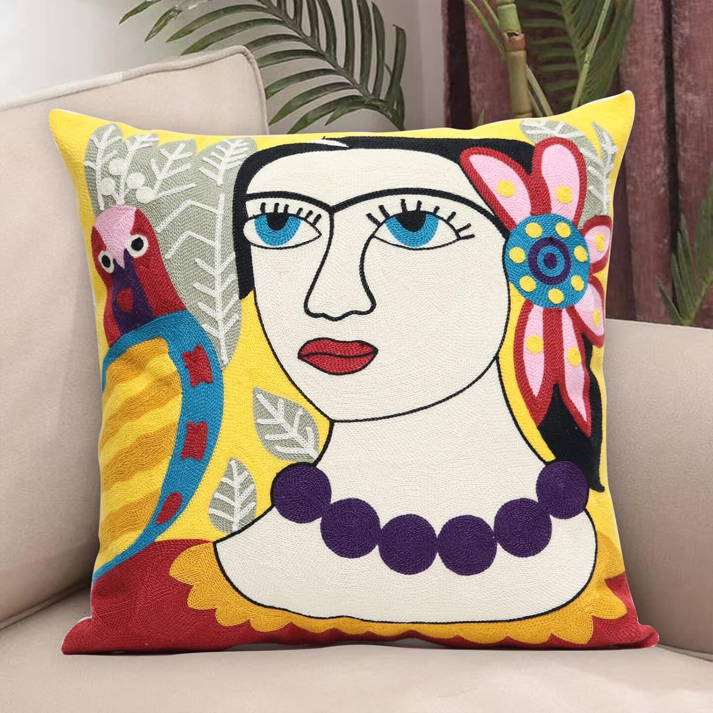Soft Cotton Throw Pillow Covers Abstract Art Embroidery Square Cushion Cover Outdoor Balcony Pillow Cases for for Sofa Living Room and Bed 18 x 18 Inch (Pattern-2)