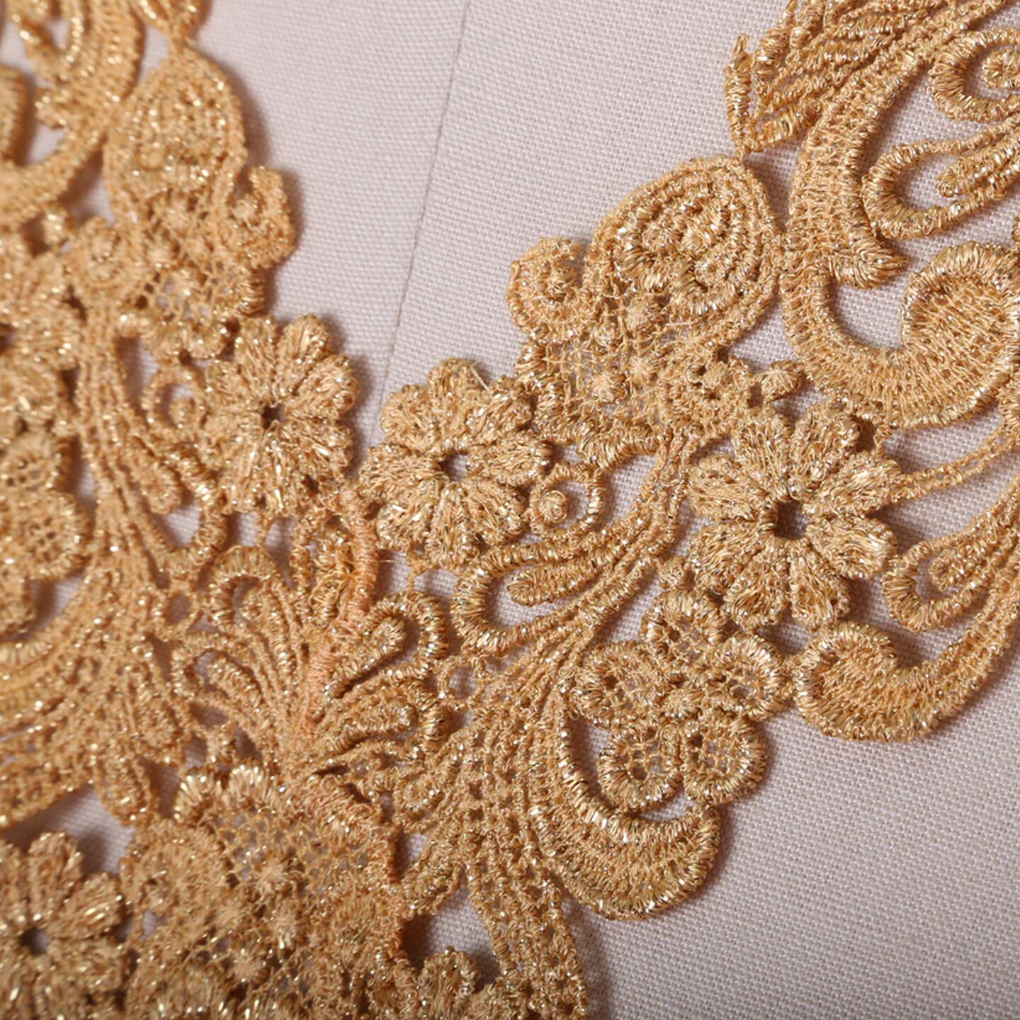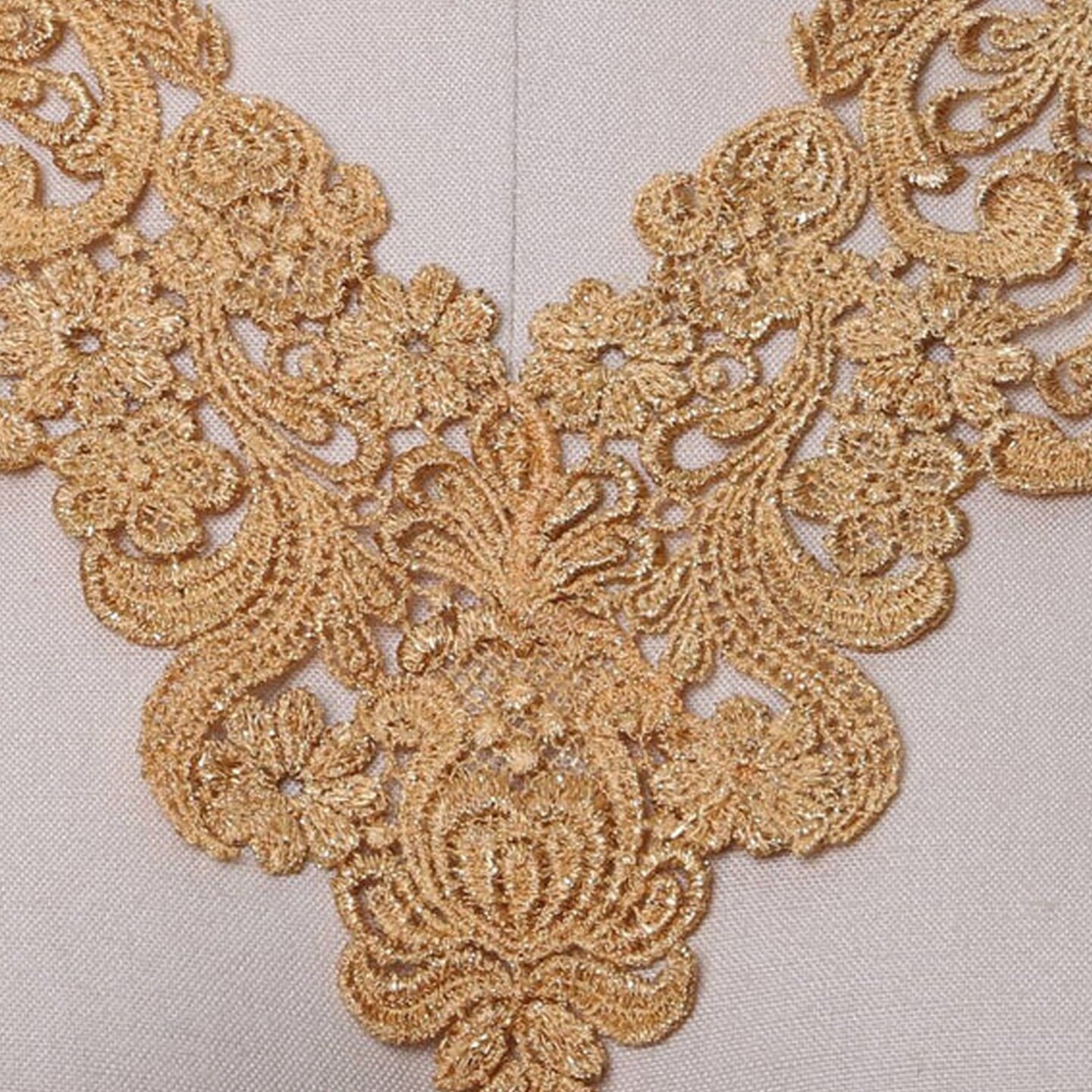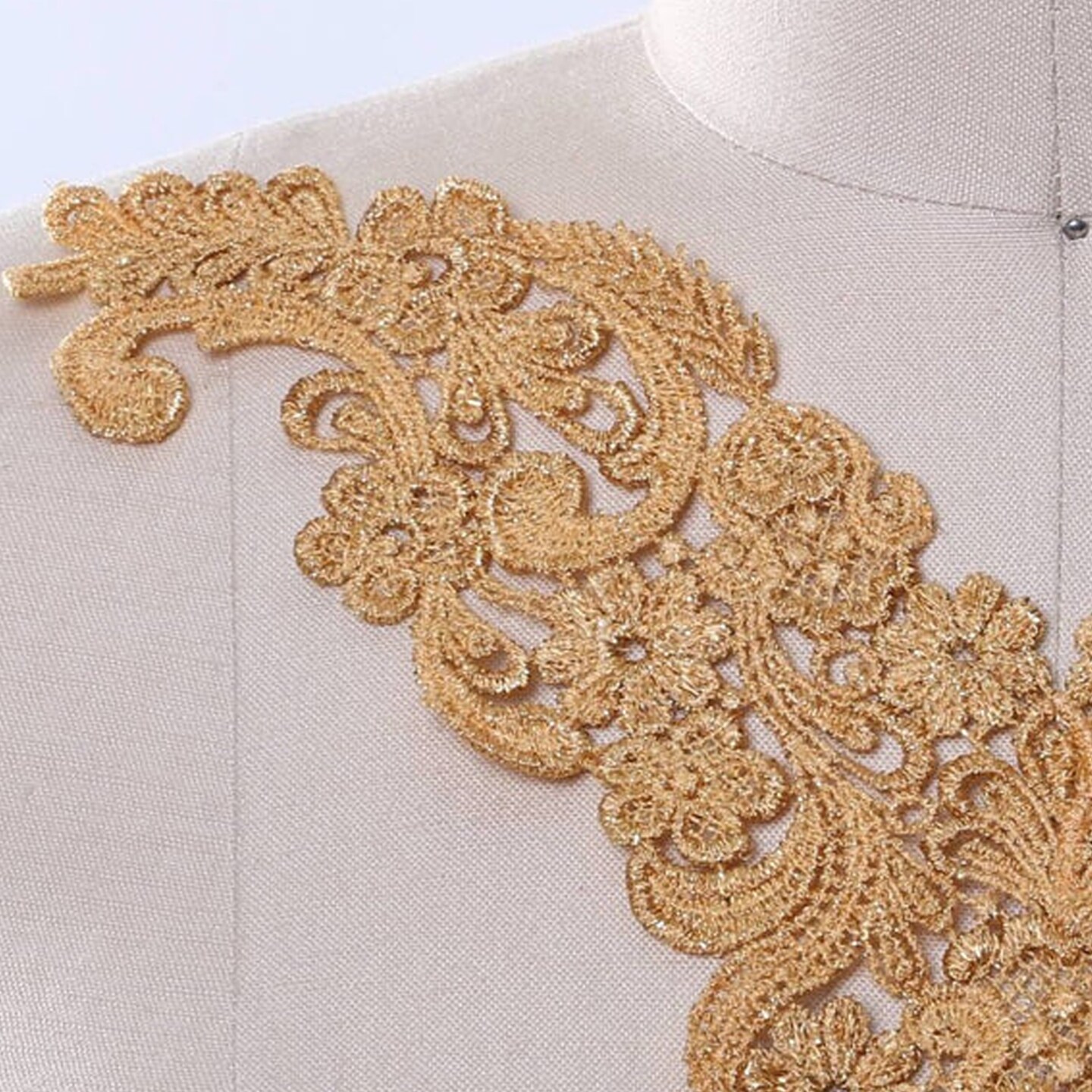Soft Gold Metallic Venice Lace Applique 1 Pc Elegant V Shaped Regal Embellishment