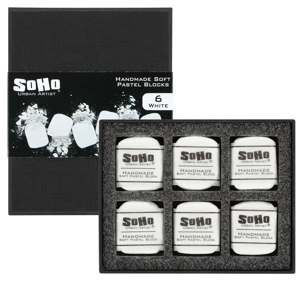 SoHo Urban Artist Handmade Soft Pastel Blocks - White Set of 6 Professional Pastels - Velvety Colors for Toning Paper, Large-Scale Drawings, & Layering - Lightfast and Highly Pigmented