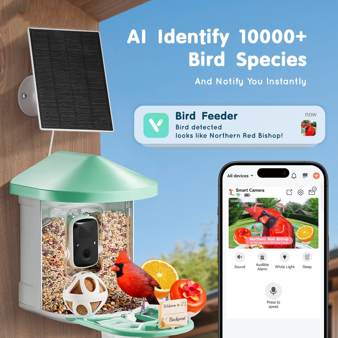 Solar AI Bird Feeder with 2K Camera, 2L Food Container and Night Vision
