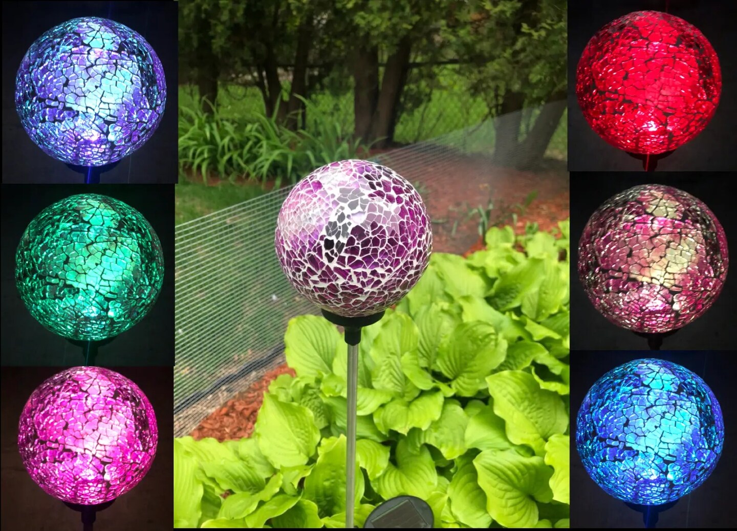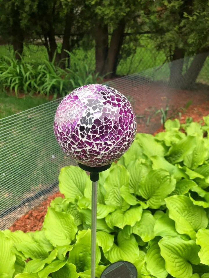 Solar Mosaic Glass Ball Garden Stake Color Change LED Light Outdoor Yard Decor