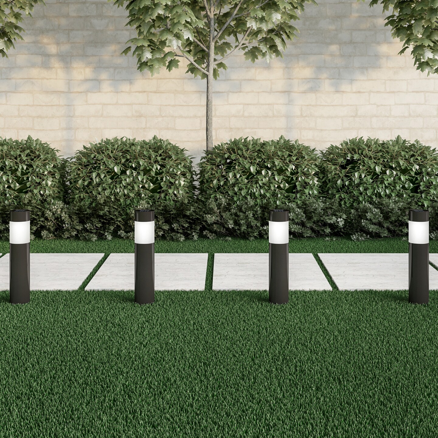 Solar Path Bollard Lights Set Of 6 Stainless Steel Outdoor Garden Lighting