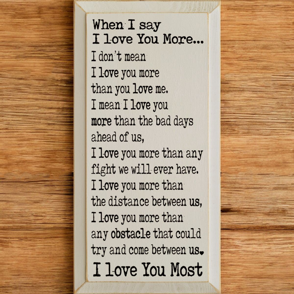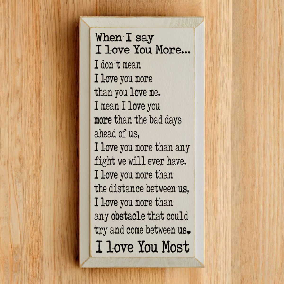 Solid Knotty Pine Rustic Wooden Wall Sign "When I Say I Love You" - 9x18 Inch