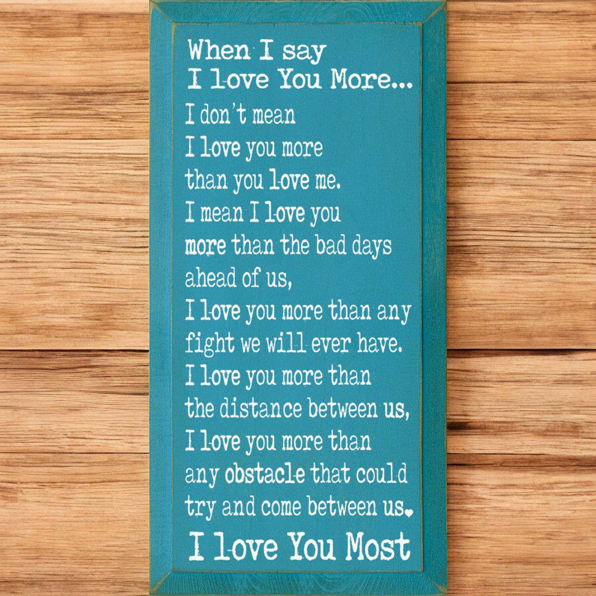Solid Knotty Pine Rustic Wooden Wall Sign "When I Say I Love You" - 9x18 Inch