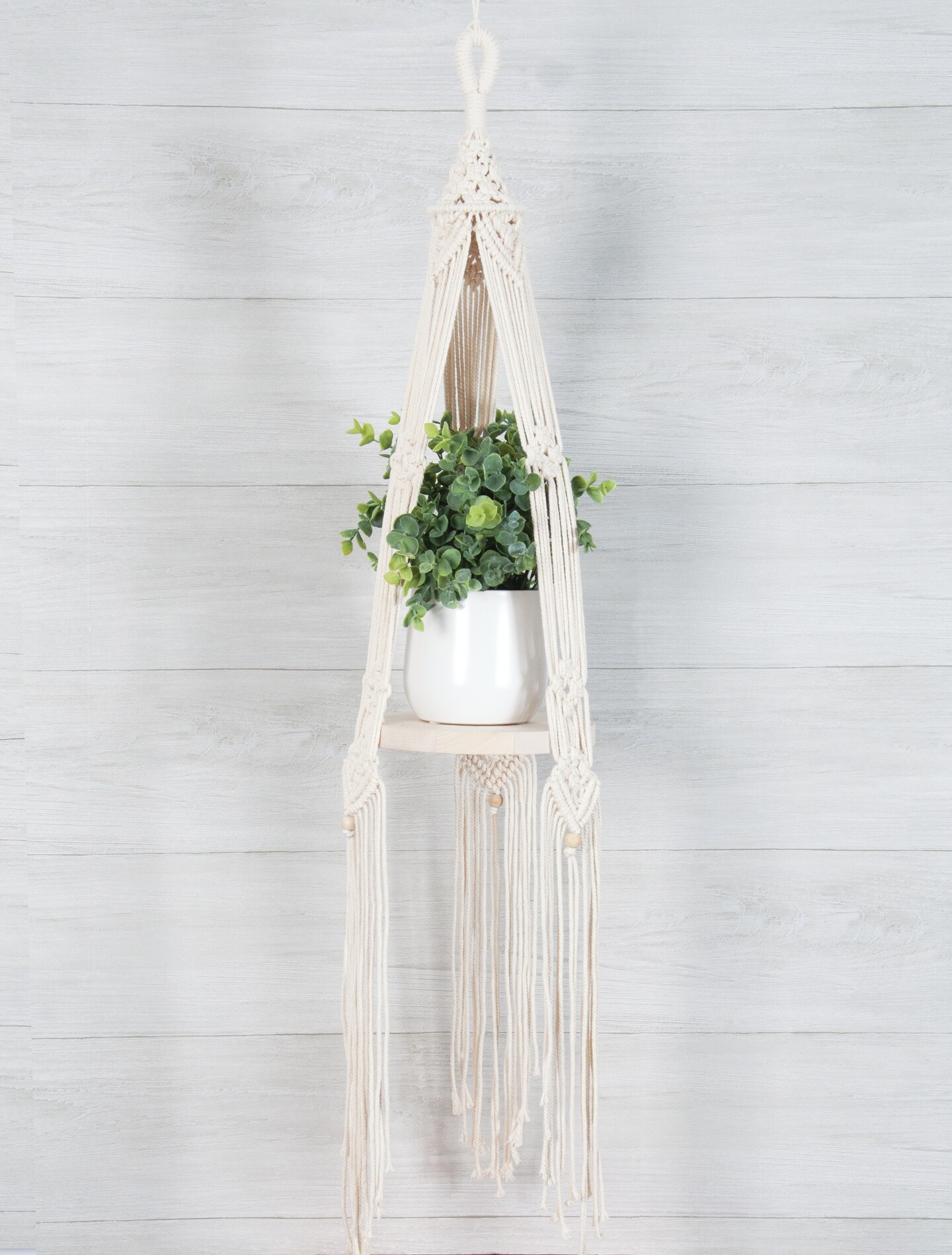 Solid Oak Macrame Decorative Hanging Kit-Hanging Shelf - Bohemian Round
