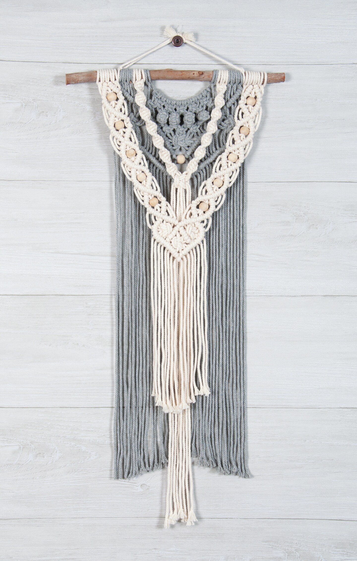 Solid Oak Macrame Decorative Hanging Kit-Two-Tone Layered Wall Hanging