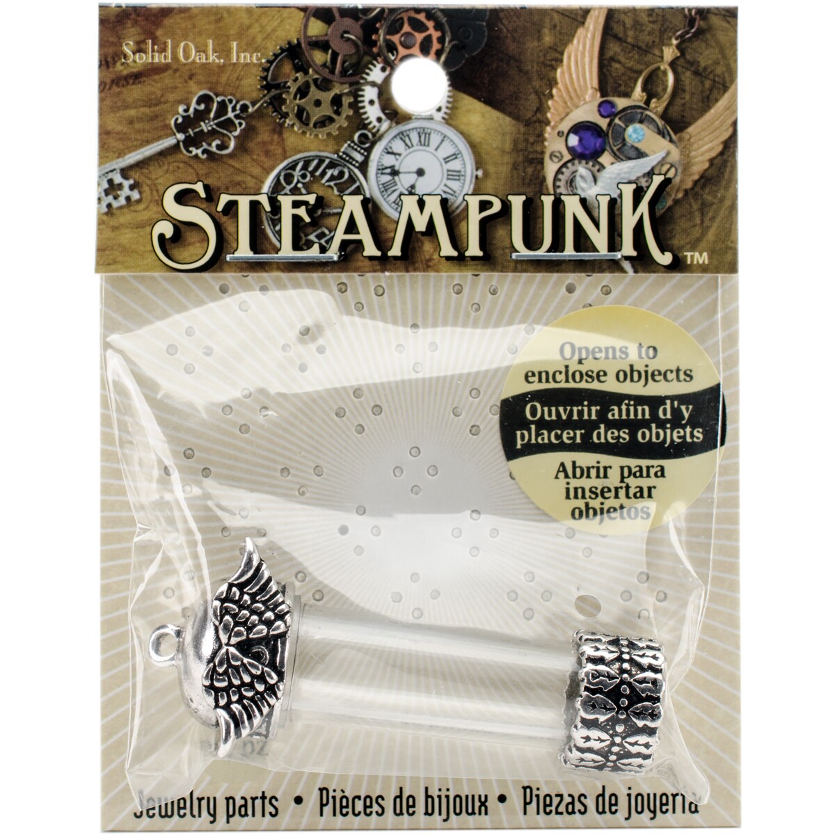 Solid Oak Steampunk Glass Pendant-Vial W/Wings