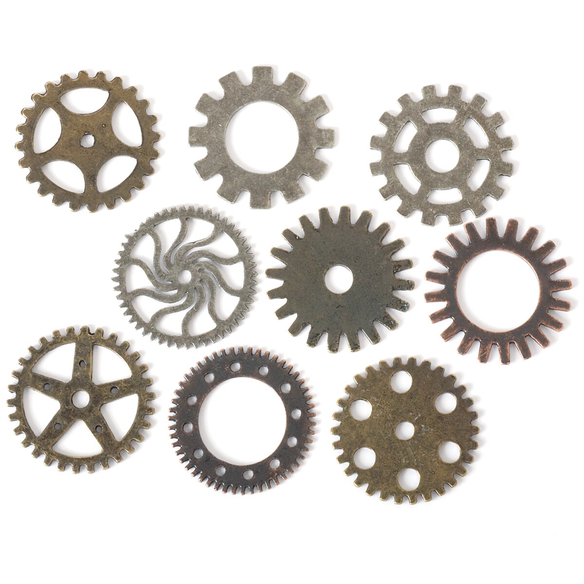 Solid Oak Steampunk Metal Accents 9/Pkg-Gears