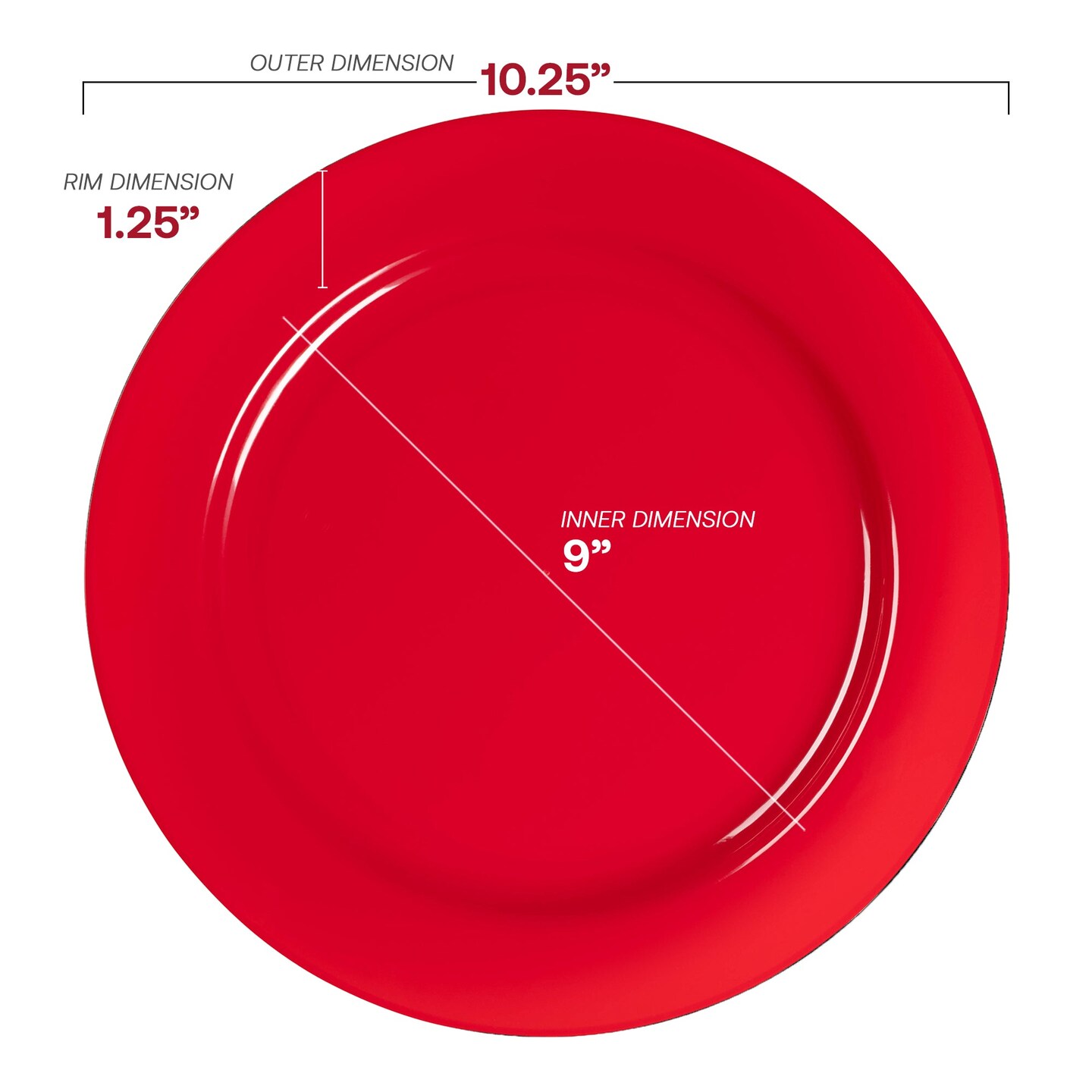 Solid Red Holiday Round Disposable Plastic Dinner Plates - 10.25" (120 Plates)