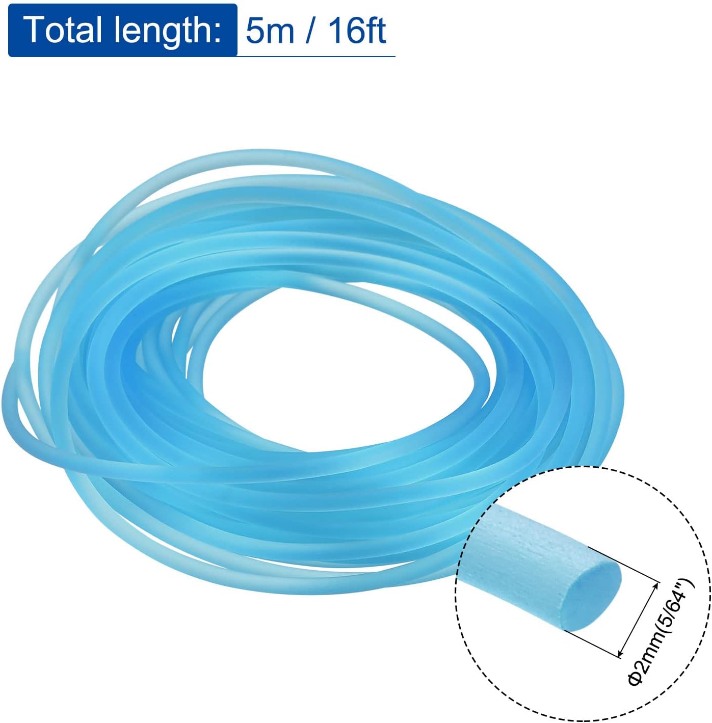 Solid Rubber Cord Tubing 16ft 2mm Dia Sky Blue Rubber Tube for DIY Craft Beading Necklaces Bracelet