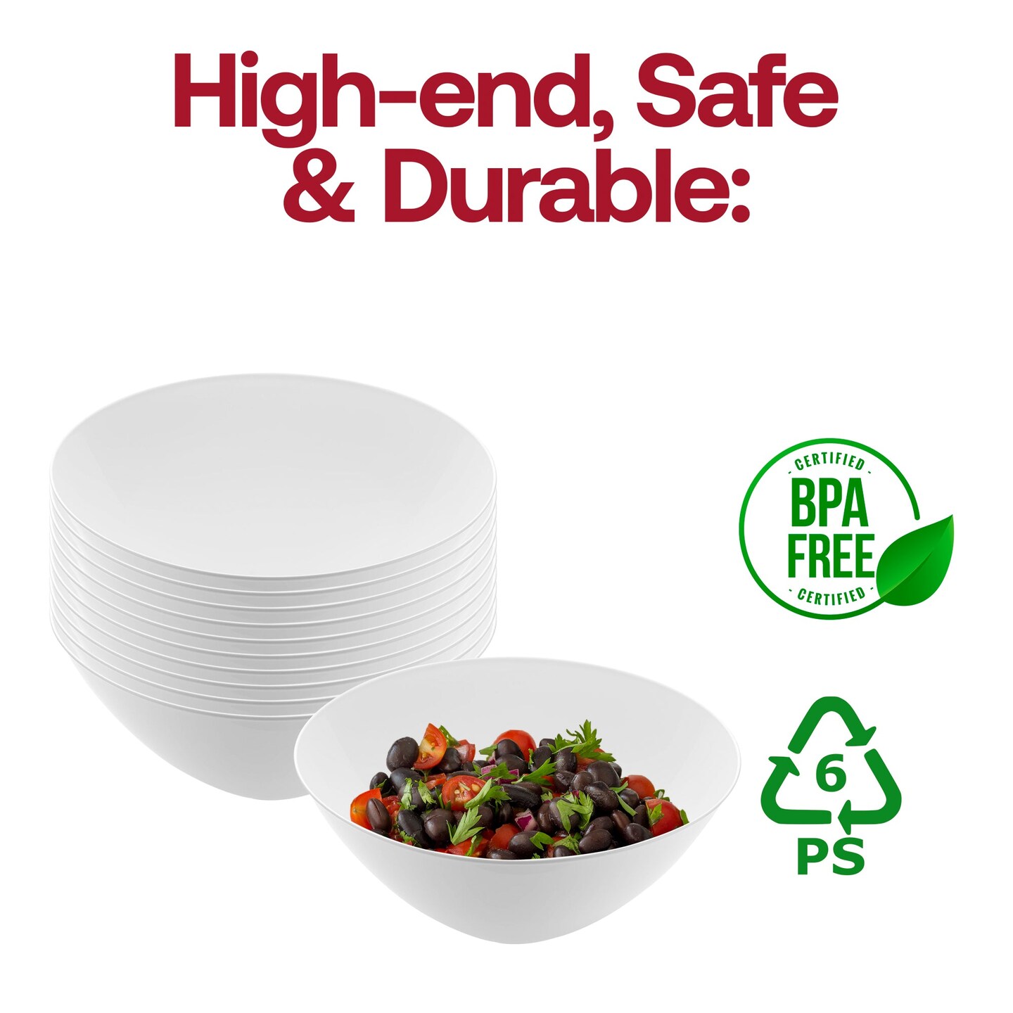 Solid White Organic Round Disposable Plastic Bowls - 32 oz. (60 Bowls)