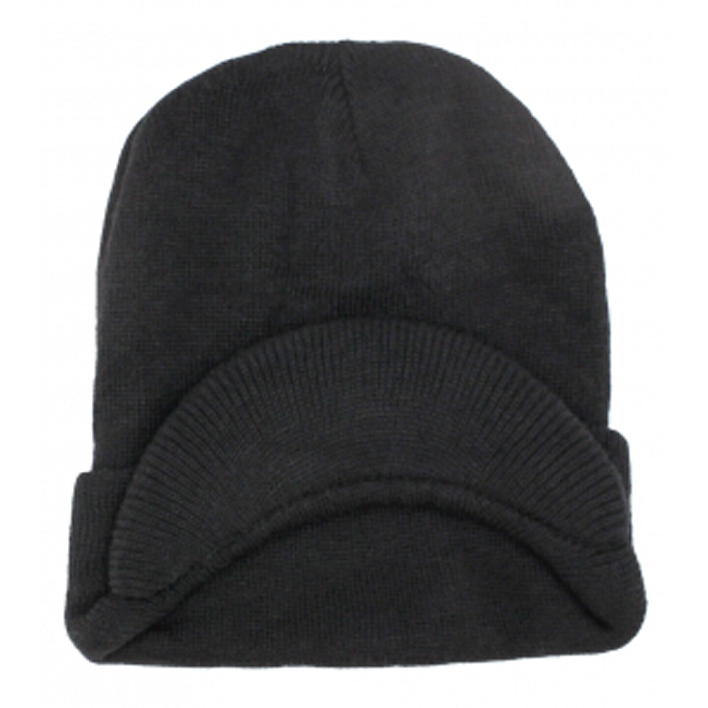 Solid Wing Black Beanie with Visor for Stylish Warmth