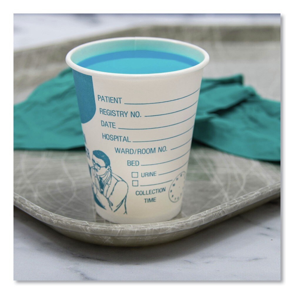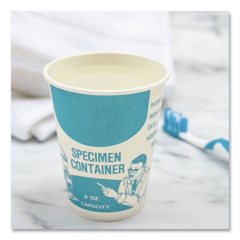 SOLO 8 oz Paper Specimen Cups - Blue/White (50/Sleeve, 20 Sleeves/Carton)