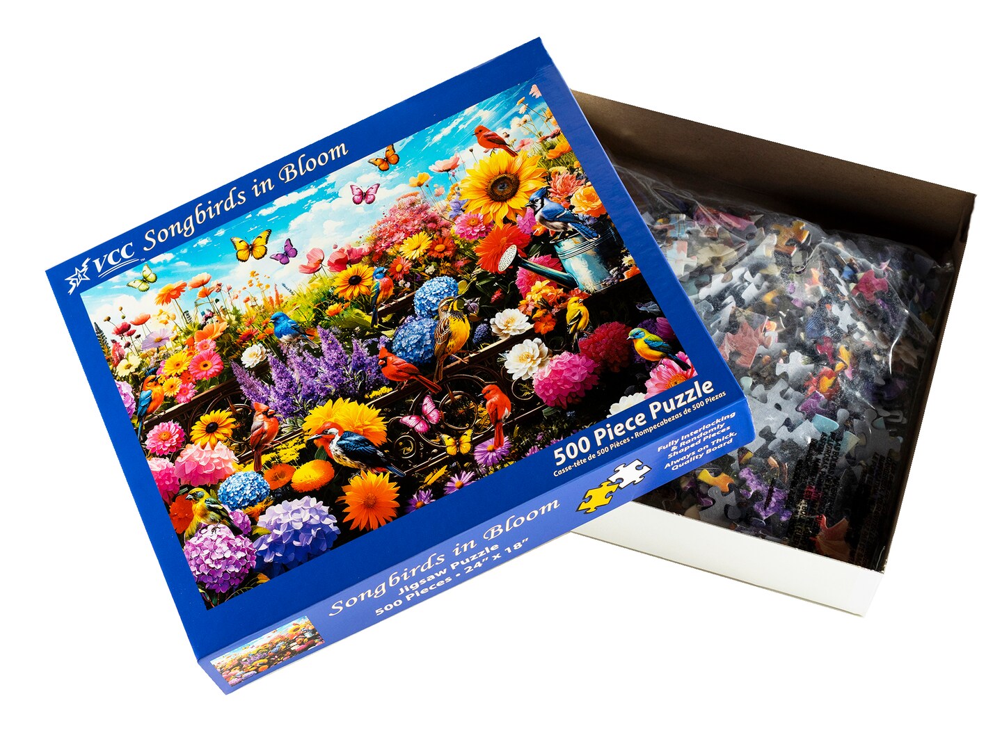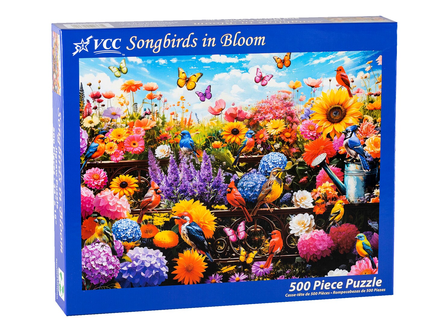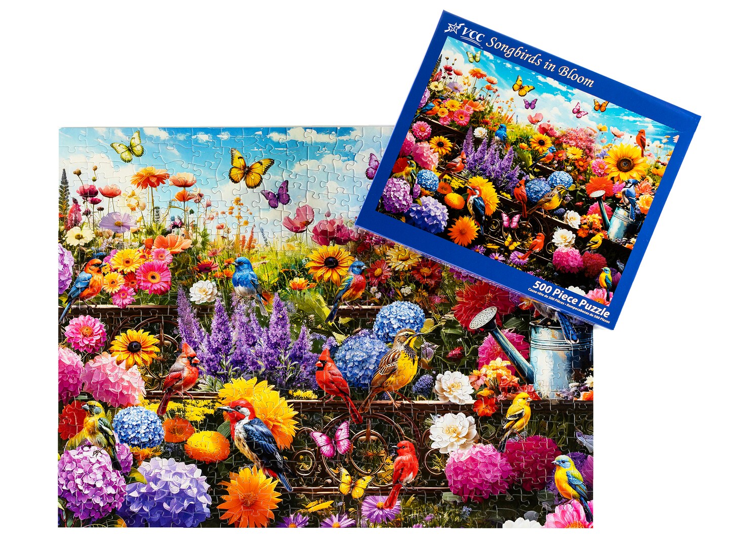 Songbirds in Bloom 500 Piece Jigsaw Puzzle - Vivid HD Colors, Randomly Shaped Interlocking Pieces, Flowers & Birds, Orioles, Cardinals, Bluebirds - Puzzles for Adults, Stress Relief, Problem Solving
