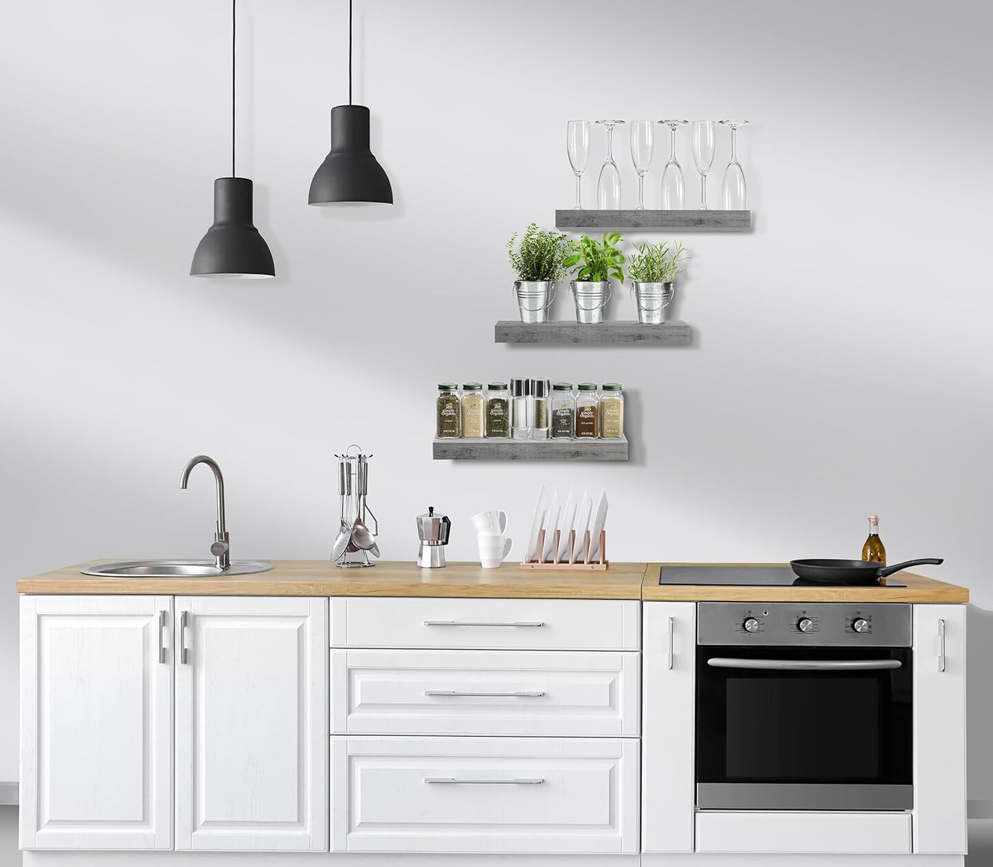 Sorbus 3 Pack Wall Mounted Floating Shelves - for Bedroom, Kitchen, Living Room, Office - Floating Shelf for Trophies, Books, Frames, etc