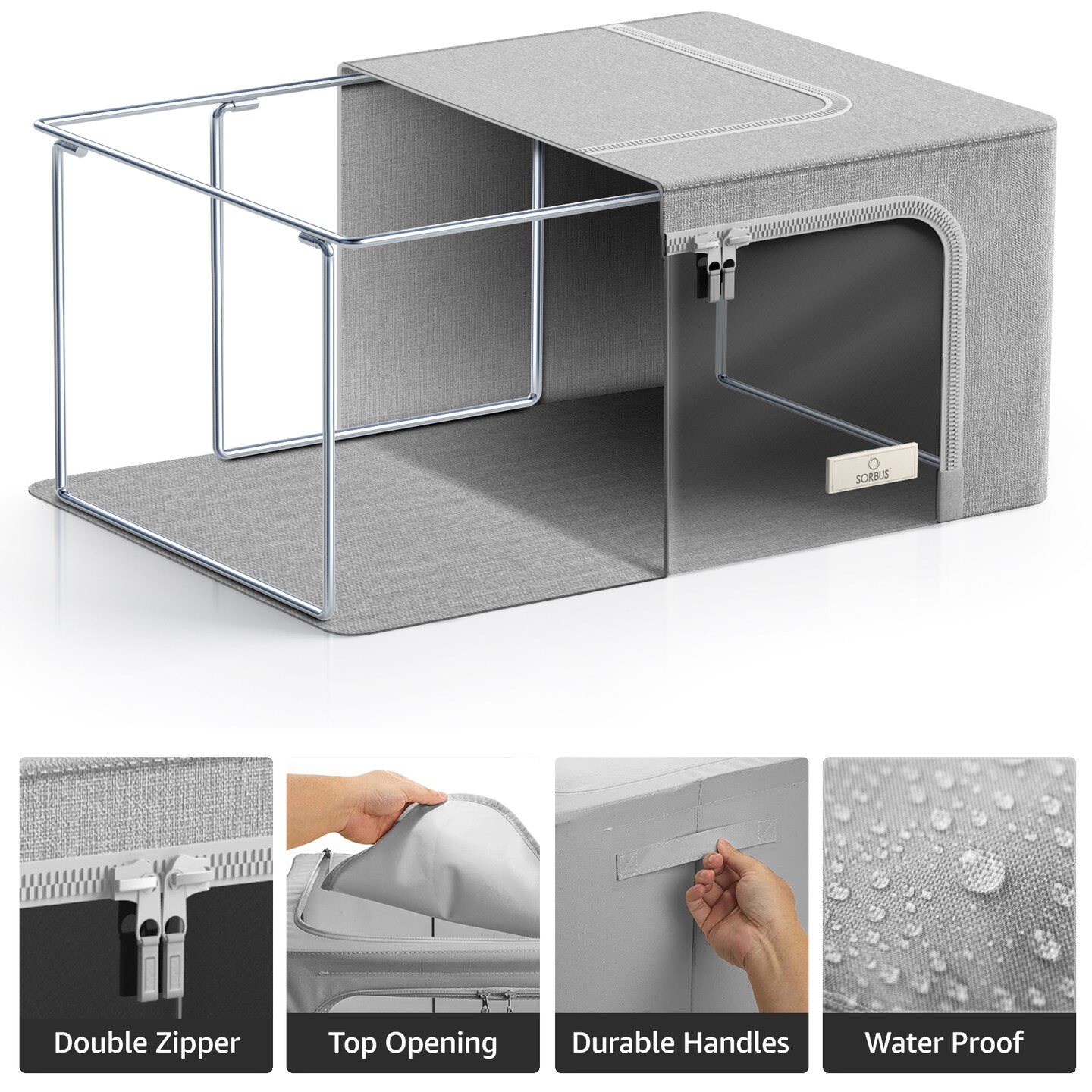 Sorbus 4 Pack Clothing Storage Bins with Windows, Handles, and Metal Frame