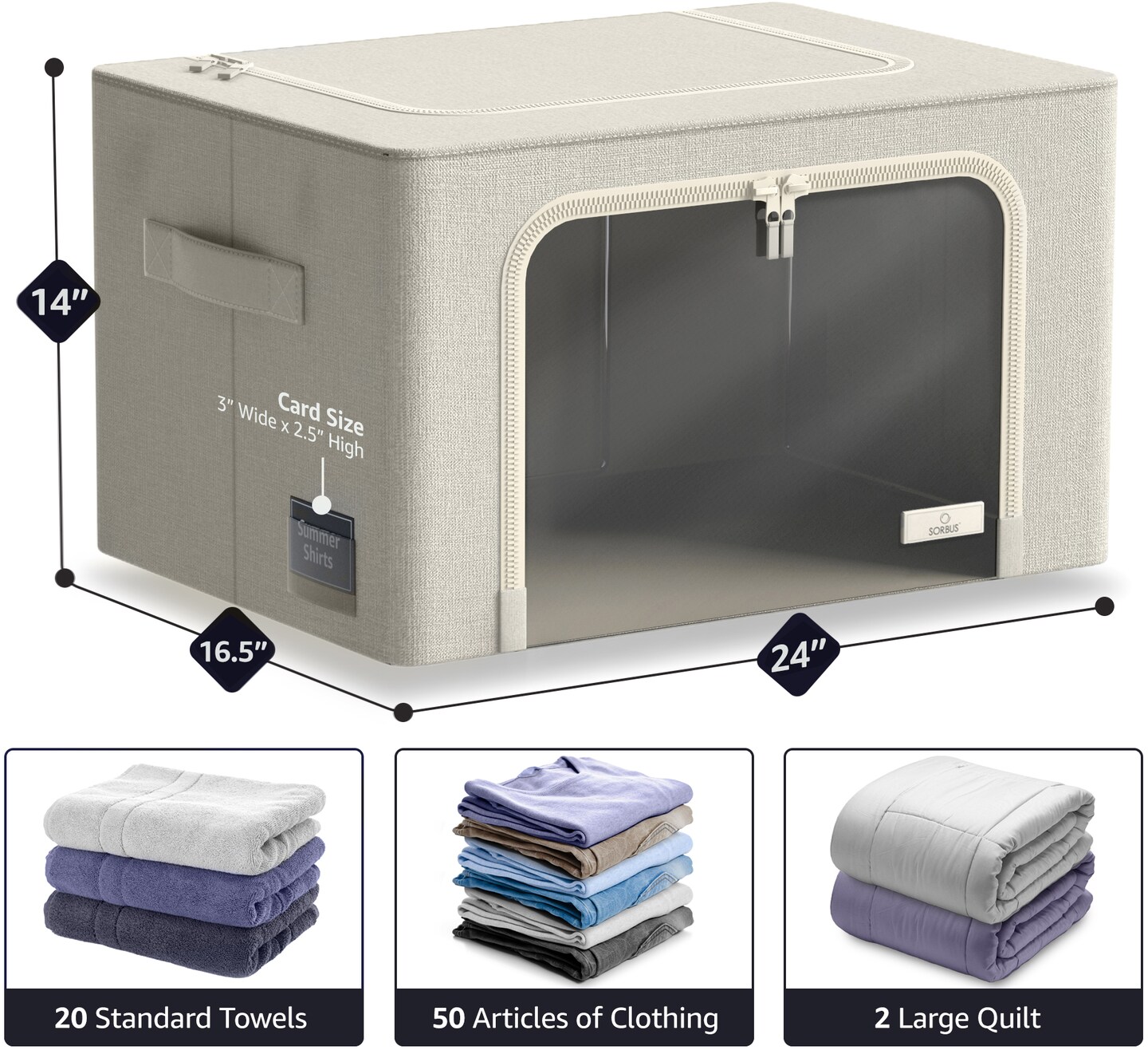 Sorbus 4 Pack Jumbo Storage Bins, Stackable & Foldable Clothes Organizer Bags with Metal Frame, Window, & Handles