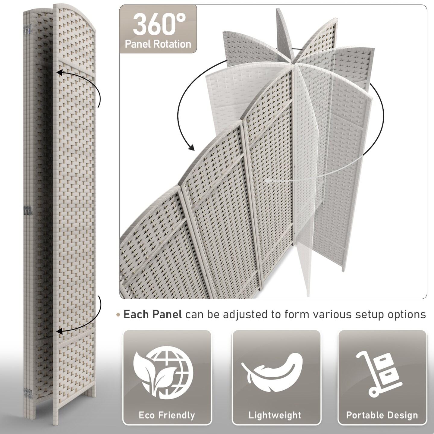 Sorbus 4 Panel Room Divider Panel, 6 ft. Tall Extra Wide Double Hinged Panels - Folding Privacy Screens