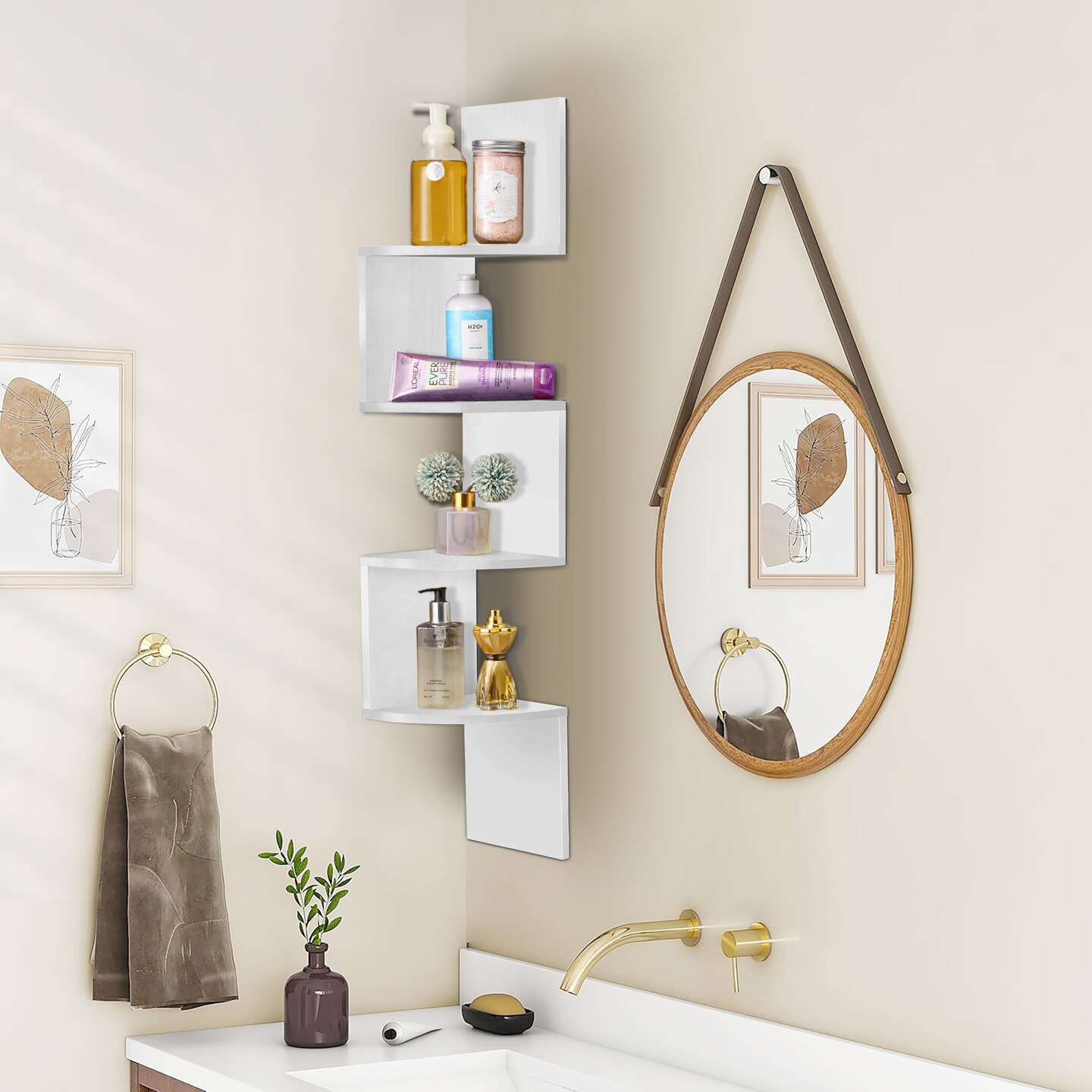Sorbus 5-Tier Zig Zag Floating Corner Wall Bookshelf Unit - (40" Tall)