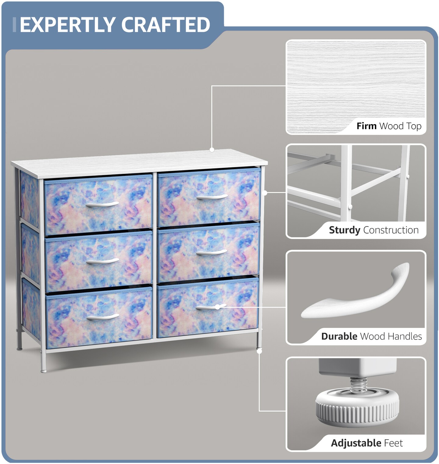 Sorbus 6 Drawers Dresser- Storage Unit with Steel Frame, Wood Top, Fabric Bins - for Bedroom, Closet, Office and more