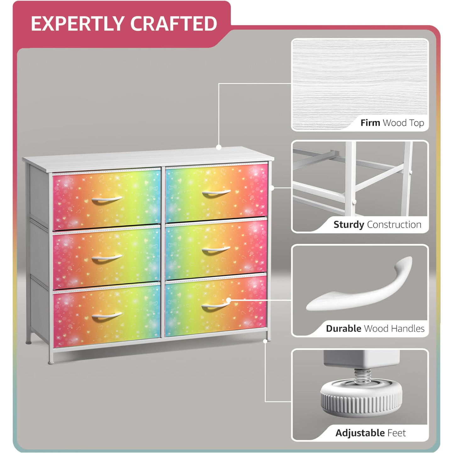 Sorbus 6 Drawers Dresser- Storage Unit with Steel Frame, Wood Top, Fabric Bins - for Bedroom, Closet, Office and more
