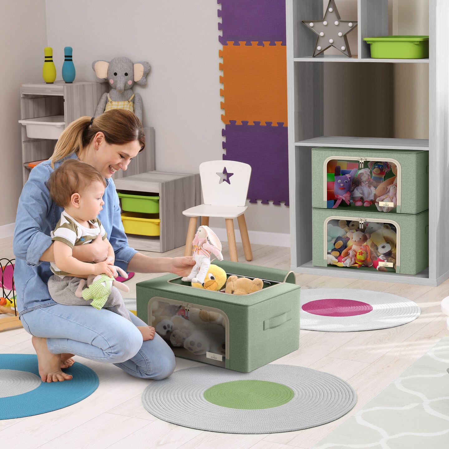 Sorbus 6 Pack Storage Bins with Metal Frame with Large Clear Window & Carry Handles - Stackable & Foldable Clothes Organizer Bags
