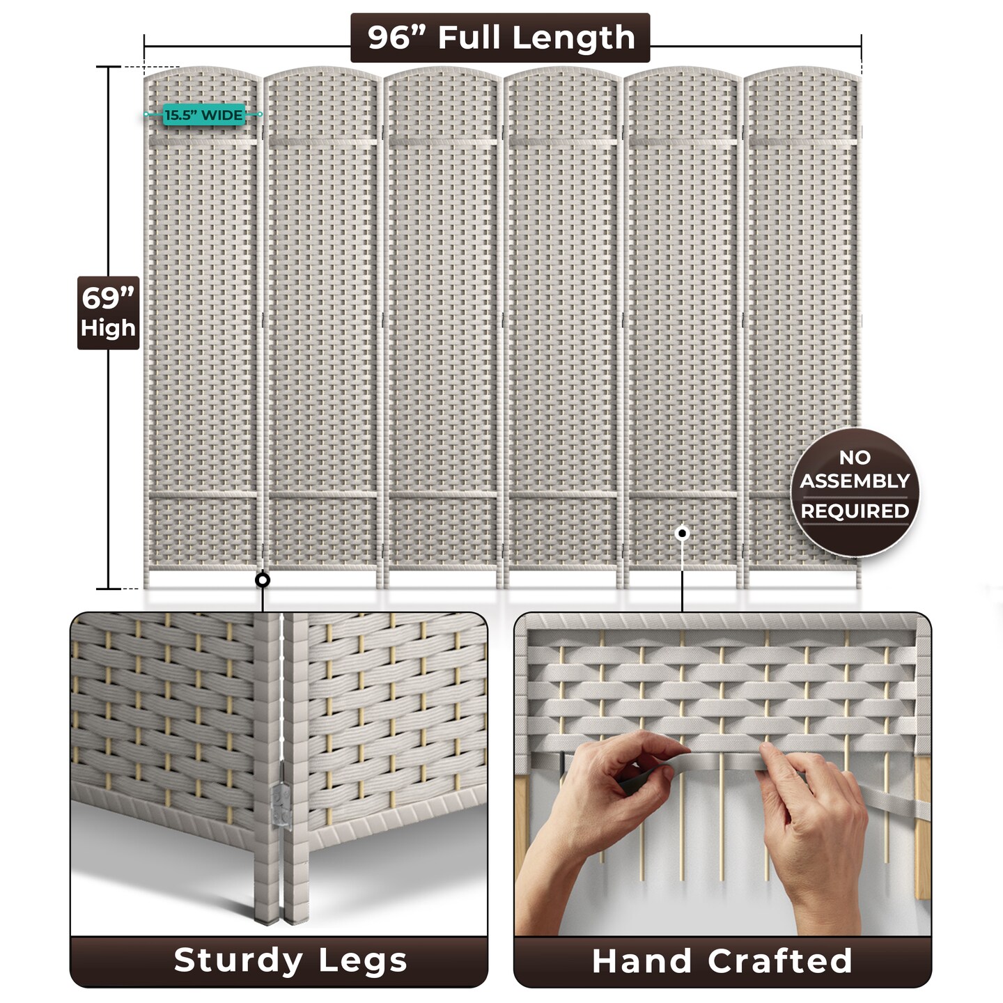 Sorbus 6 Panel Room Divider 6 ft. Tall - Privacy Screen, Extra Wide Double Hinged Panels, Mesh Hand-Woven Design