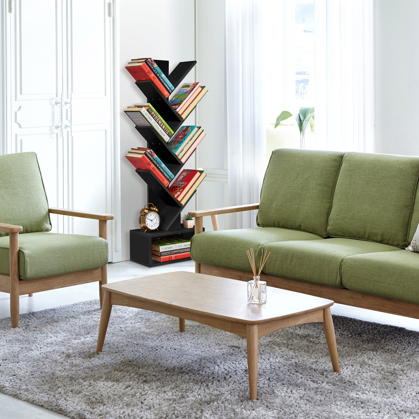 Sorbus 7-Tier Zigzag Tree Bookcase with Open Drawer for Books, Decor, and Accessories