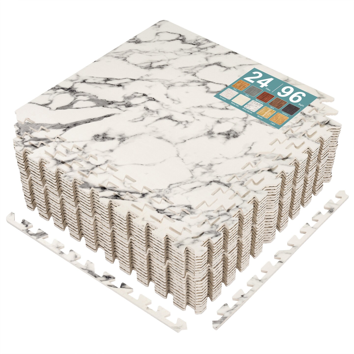 Sorbus 96 Sq. Ft. Wood Grain Floor Tiles, 24 Interlocking EVA Foam Mats, Thick Floor Mats w/ Borders for Home Gym, Playroom, and More