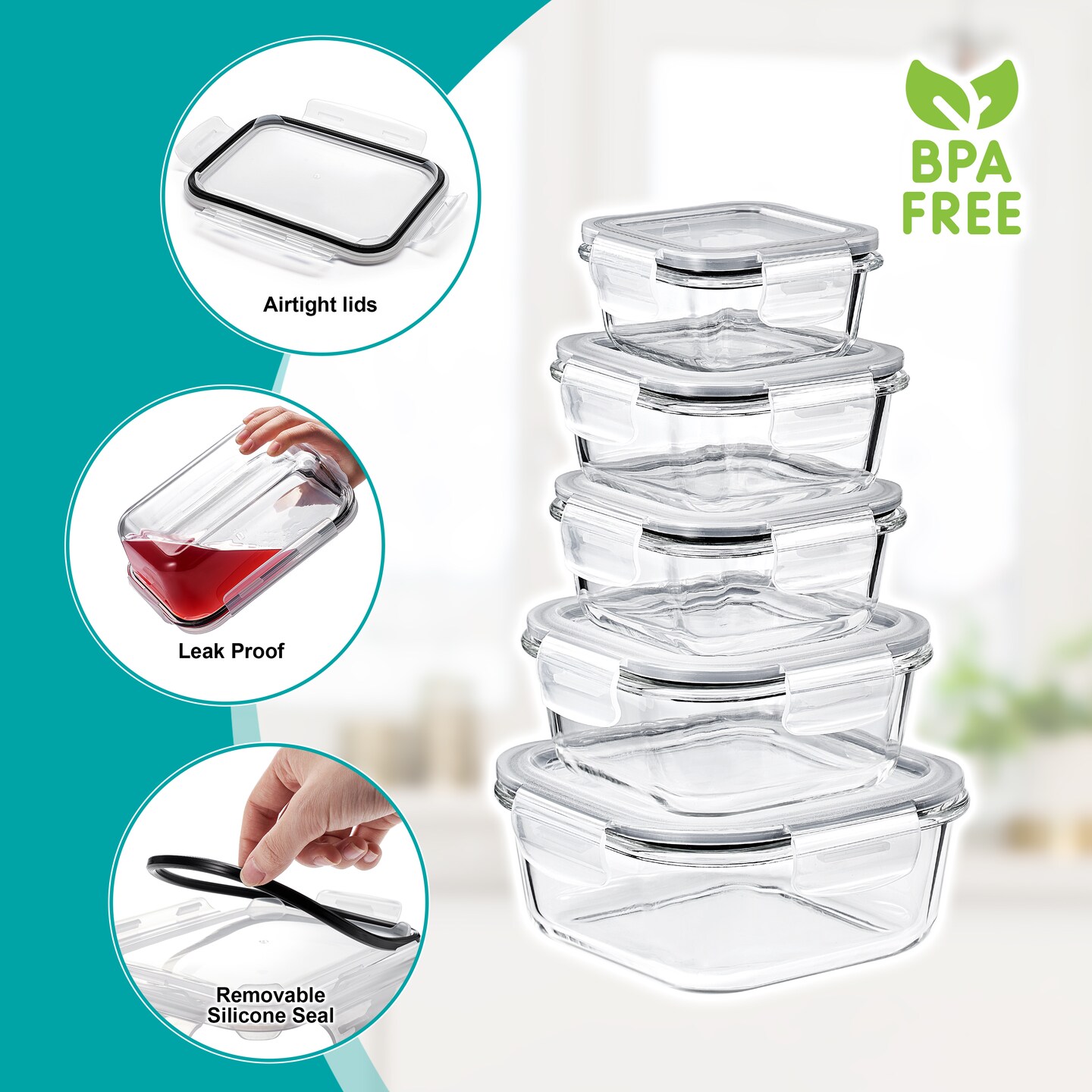 Sorbus Airtight Glass Meal Prep Containers, Dishwasher and Oven Safe Reusable Meal Prep Containers 28 Piece Set