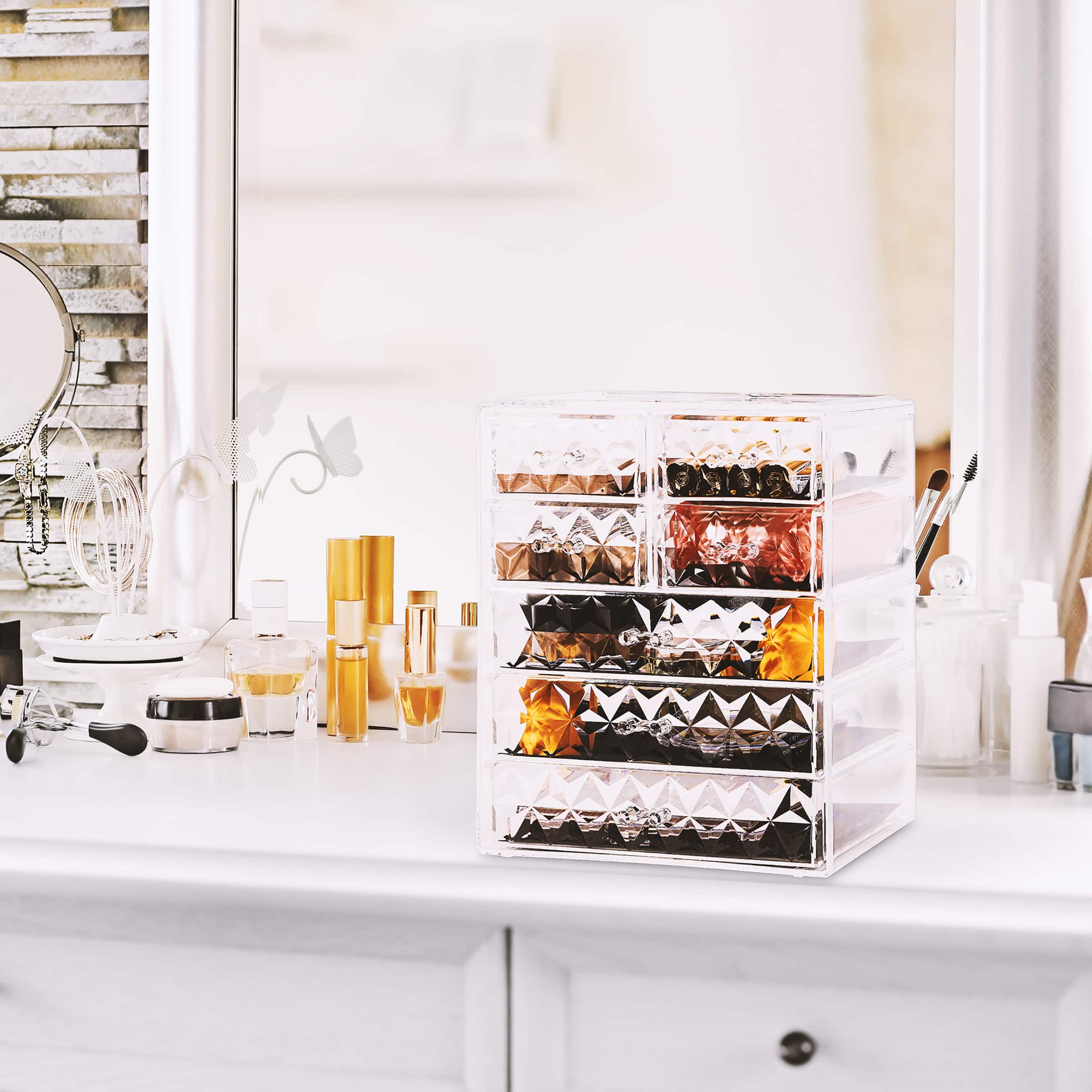 Sorbus Brown Makeup & Jewelry Storage Case with 3 Large & 4 Small Drawers