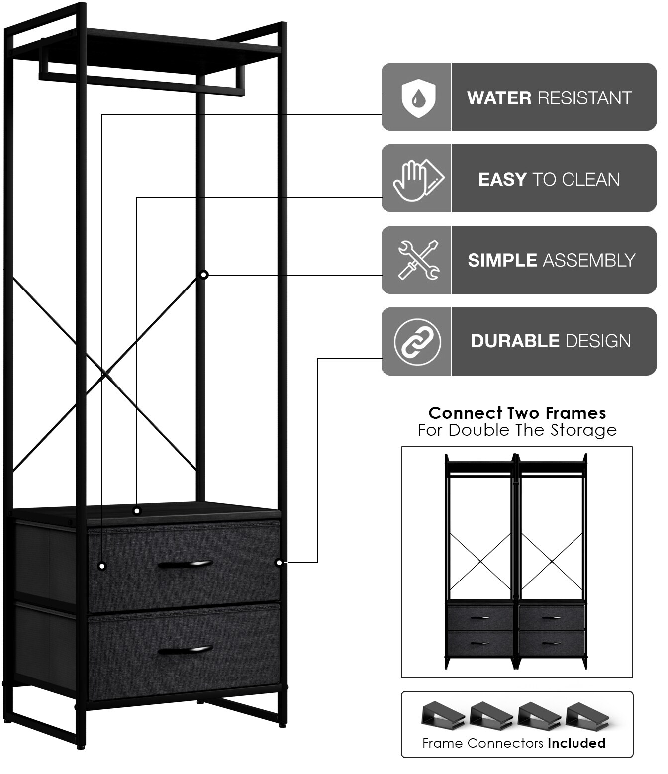 Sorbus Clothing Rack with Drawers - Clothes Stand Dresser - Wood Top, Steel Frame, & Fabric Drawers - Tall Closet Storage Organizer - Garment Rack for Hanging Shirts, Dresses, & Jackets