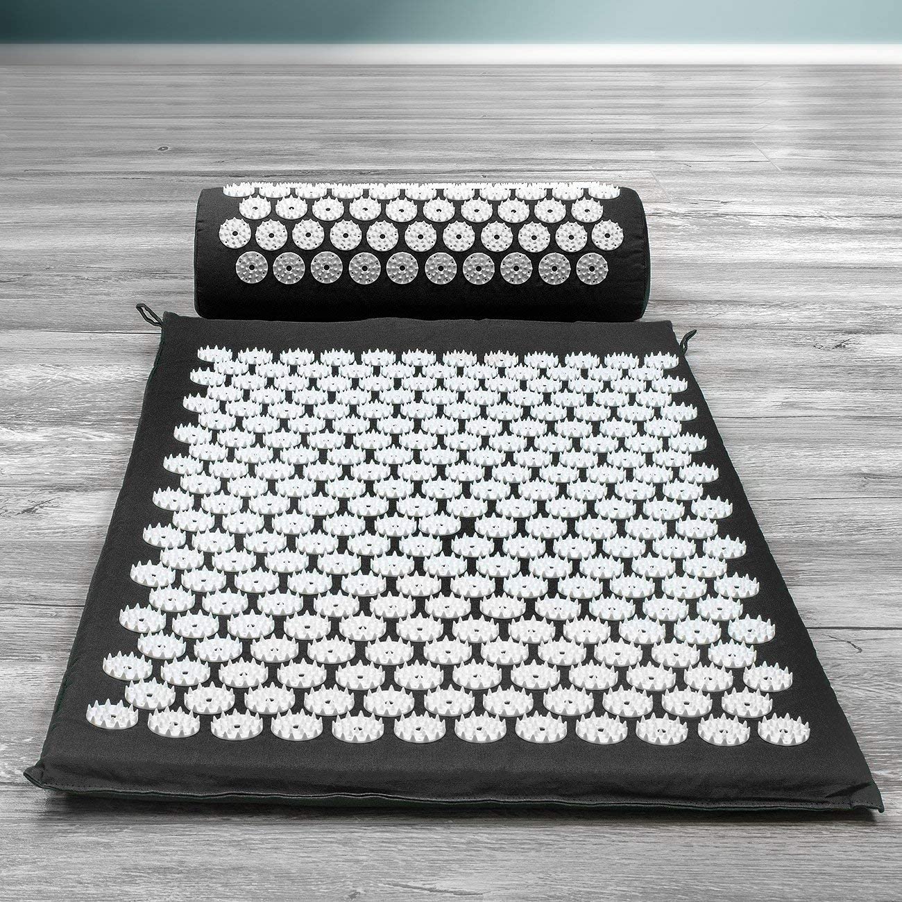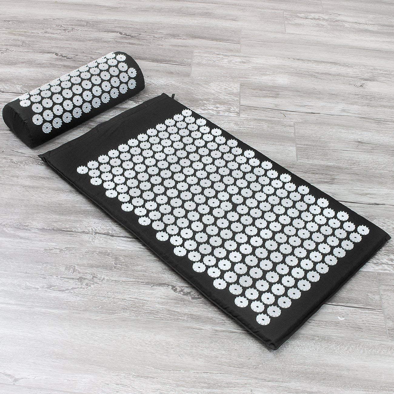 Sorbus Deluxe Acupressure Mat Pillow Combo Set - Relieves Your Stress of Lower Upper Back and Sciatic Pain (Black)