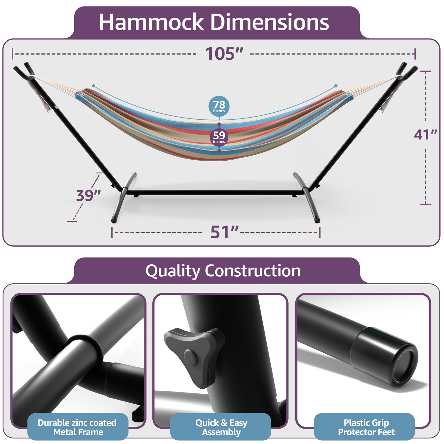 Sorbus Double Hammock With Steel Stand - Portable Carrying Case