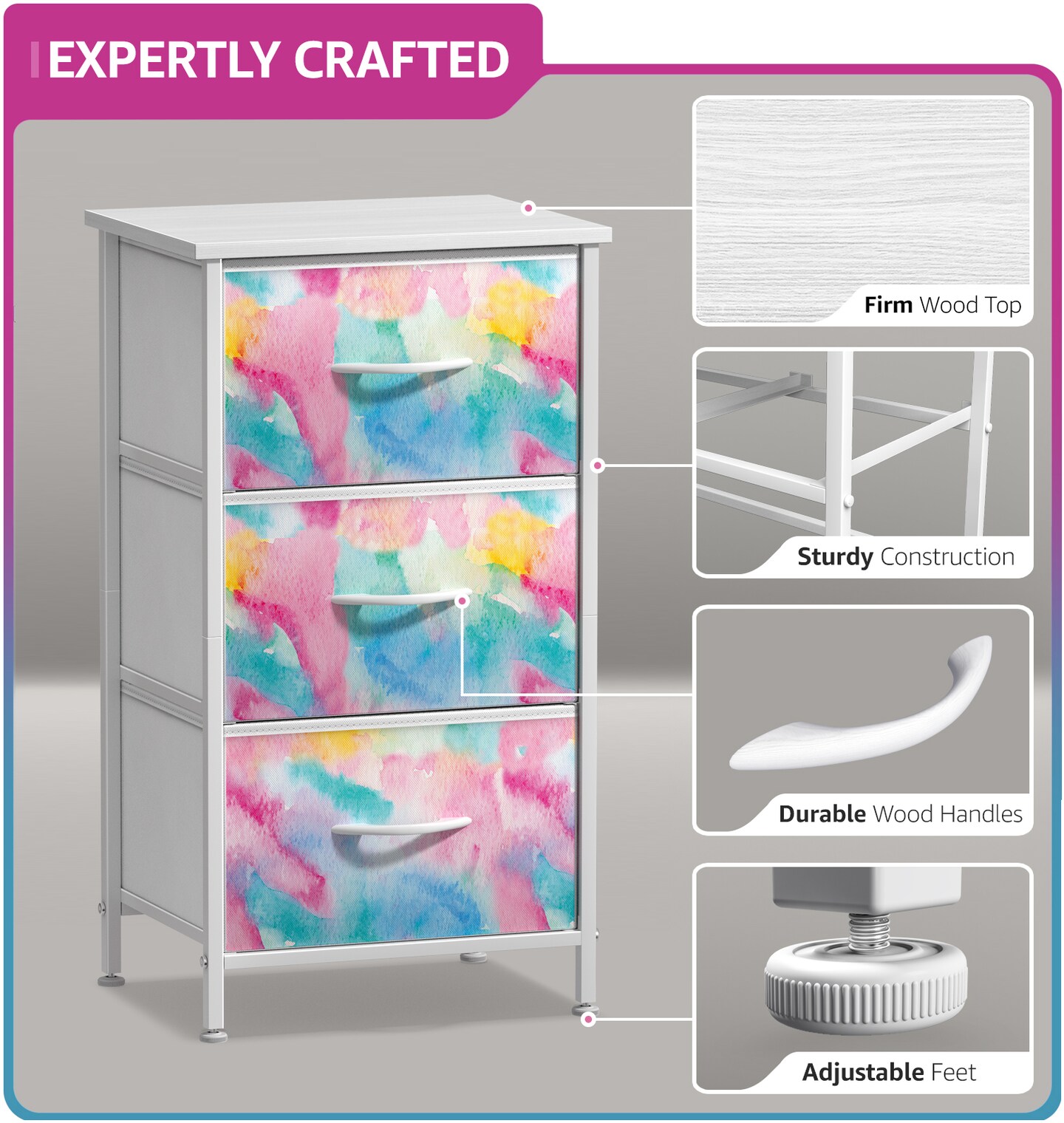Sorbus Dresser with 3 Drawers - Bedside Furniture & Accent End Table Chest for Home, Bedroom Accessories, Office, College Dorm, Steel Frame, Wood Top, Fabric Drawers