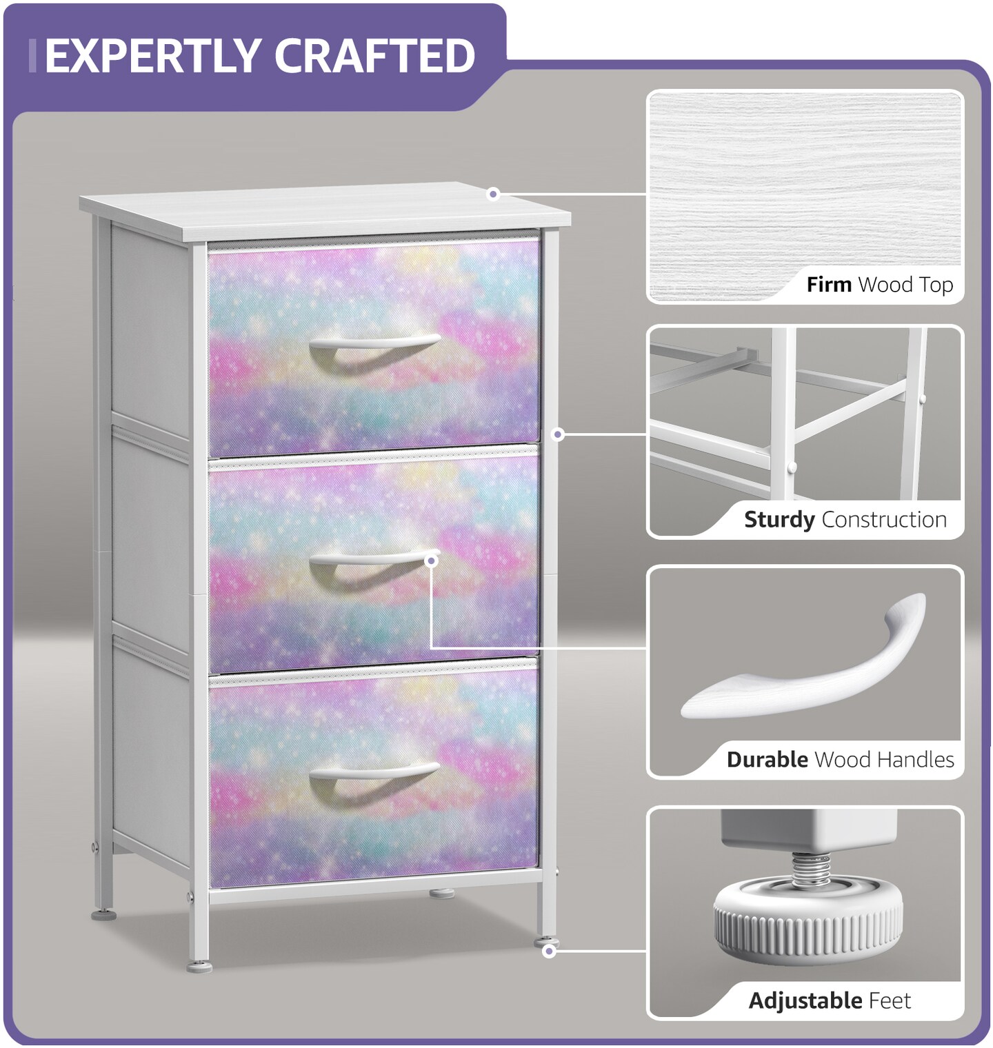Sorbus Dresser with 3 Drawers - Bedside Furniture & Accent End Table Chest for Home, Bedroom Accessories, Office, College Dorm, Steel Frame, Wood Top, Fabric Drawers